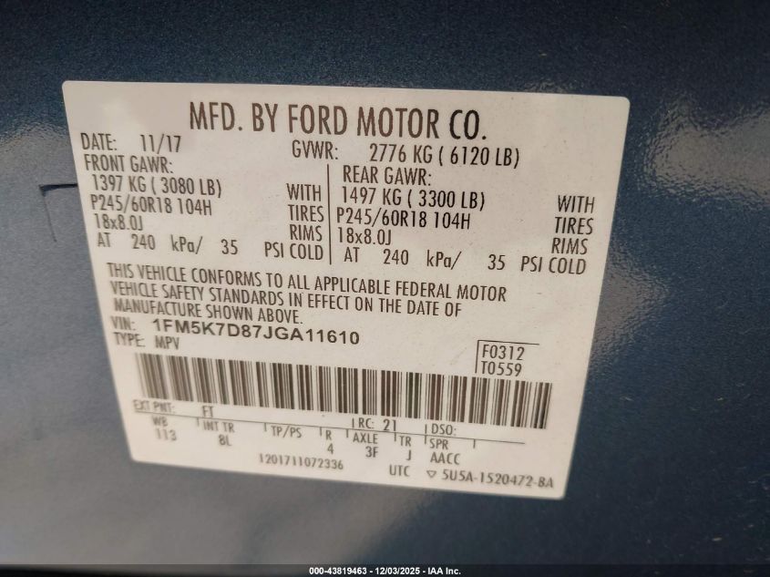 Цвет СинийЦилиндры 6Привод Передний приводVIN 1FM5K7D87JGA11610Состояние Заводится и едет (проверено)Повреждения Передняя правая AutoRIA