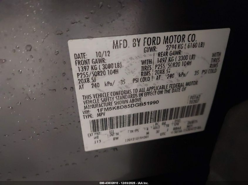 Цвет СерыйЦилиндры 6Привод Полный приводVIN 1FM5K8D85DGB51990Состояние Заводится и едет (проверено)Повреждения Передняя или задняя AutoRIA