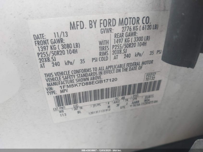 Цвет БелыйЦилиндры 6Привод Передний приводVIN 1FM5K7D88EGB17120Состояние Заводится и едет (проверено)Повреждения Левая сторонаДата аукциона 2025-12-11 AutoRIA