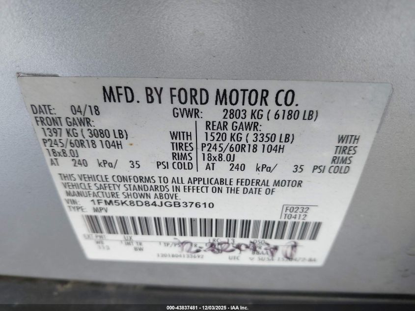 Цвет СеребряныйЦилиндры 6Привод Полный приводVIN 1FM5K8D84JGB37610Состояние Заводится и едет (проверено)Повреждения Левая сторона AutoRIA
