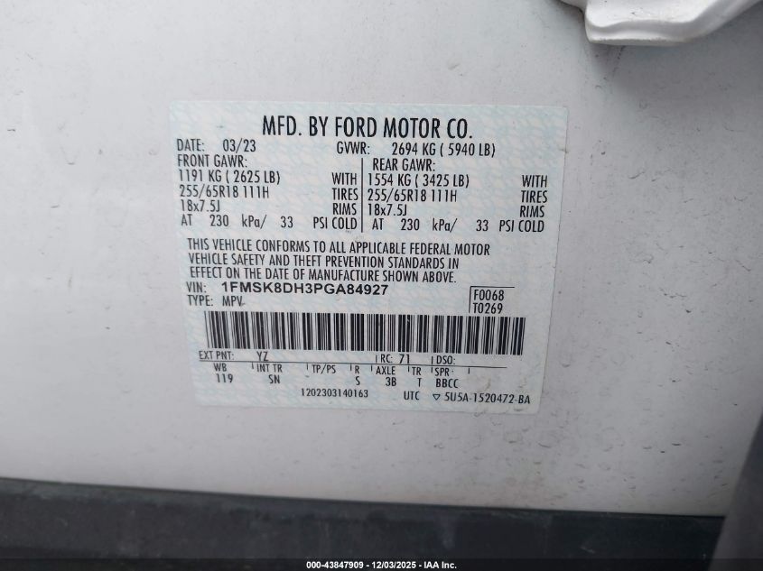 Цвет БелыйЦилиндры 4Привод Полный приводVIN 1FMSK8DH3PGA84927Состояние Заводится и едет (проверено)Повреждения Правая сторона AutoRIA