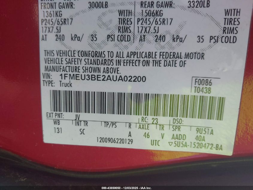 Цвет КрасныйЦилиндры 6VIN 1FMEU3BE2AUA02200Состояние Заводится и едет (проверено)Повреждения Передняя левая AutoRIA