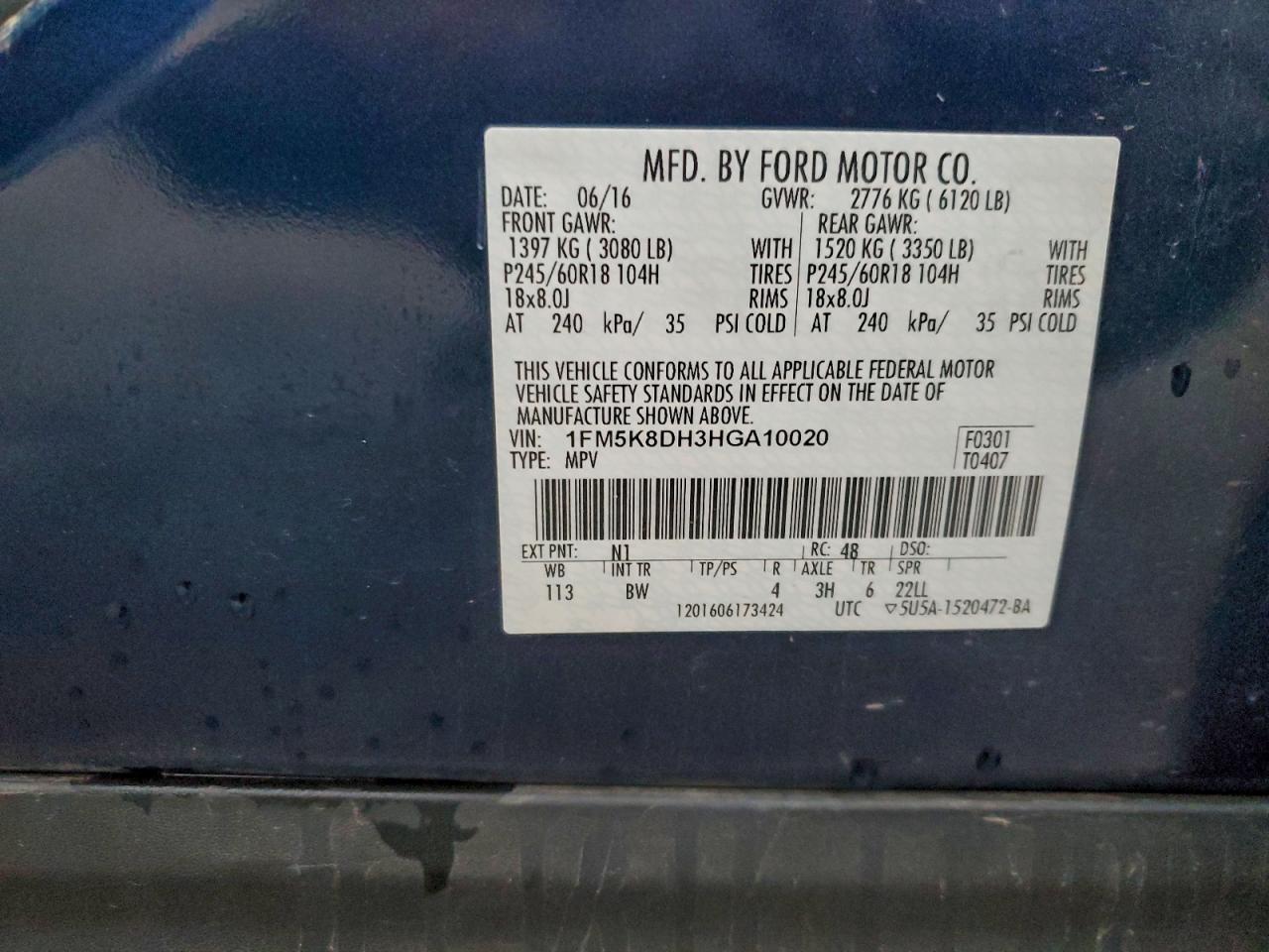 Цвет СинийЦилиндры 4Привод 4x4 с передним приводомVIN 1FM5K8DH3HGA10020Состояние ЗаводитсяПовреждения Передняя или задняя AutoRIA