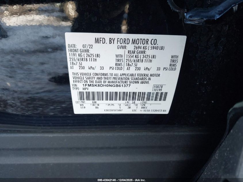 Цвет ЧерныйЦилиндры 4Привод Полный приводVIN 1FMSK8DH0NGB61377Состояние Заводится и едет (проверено)Повреждения Передняя или задняя AutoRIA