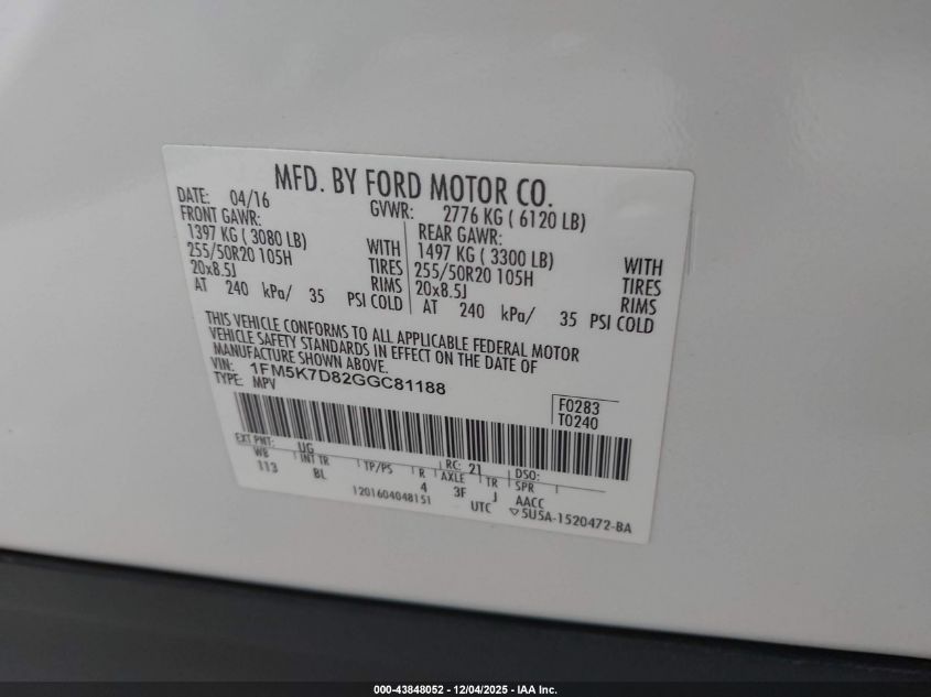 Цвет БелыйЦилиндры 6Привод Передний приводVIN 1FM5K7D82GGC81188Состояние Заводится и едет (проверено)Повреждения Передняя или задняя AutoRIA
