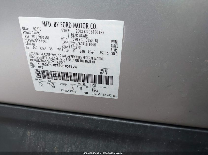 Цвет СерыйЦилиндры 6Привод Полный приводVIN 1FM5K8D87JGB06724Состояние Заводится и едет (проверено)Повреждения Задняя левая AutoRIA