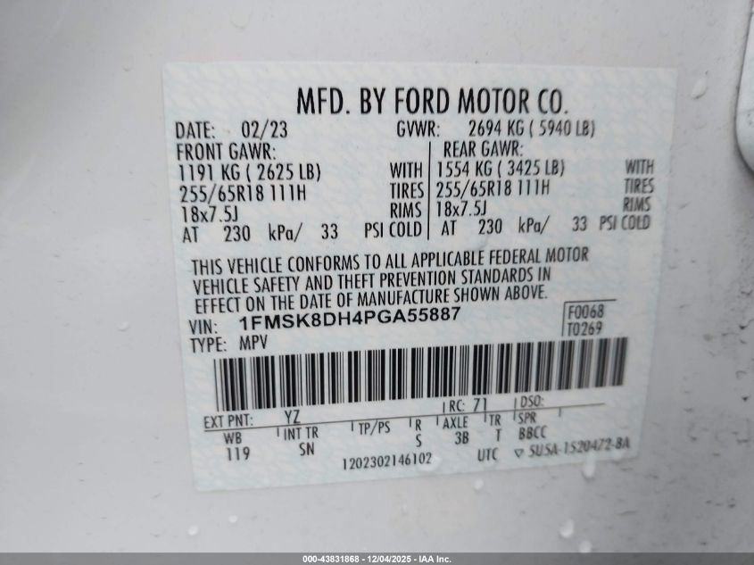 Цвет БелыйЦилиндры 4Привод Полный приводVIN 1FMSK8DH4PGA55887Состояние Заводится и едет (проверено)Повреждения Задняя AutoRIA