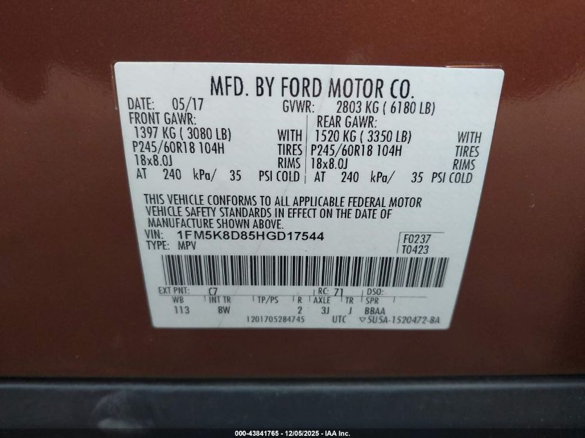 Цвет АпельсиновыйЦилиндры 6Привод Полный приводVIN 1FM5K8D85HGD17544Состояние Заводится и едет (проверено)Повреждения Передняя или задняя AutoRIA