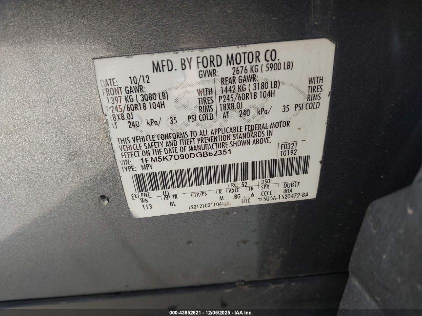 2013 FORD EXPLORER 2013 року Бензин, 2.0, Передний привод, vin - 1FM5K7D90DGB62351 из США