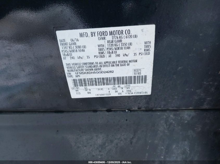 2016 FORD EXPLORER 2016 року Бензин, 2.3, Полный привод, vin - 1FM5K8DH5GGD24282 из США