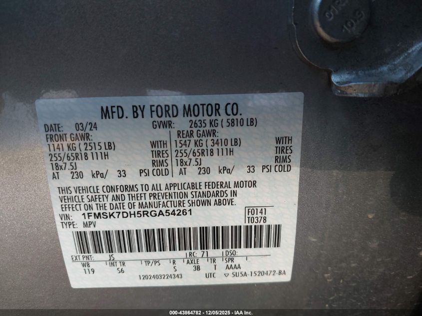 2024 FORD EXPLORER 2024 року Бензин, 2.3, , vin - 1FMSK7DH5RGA54261 из США