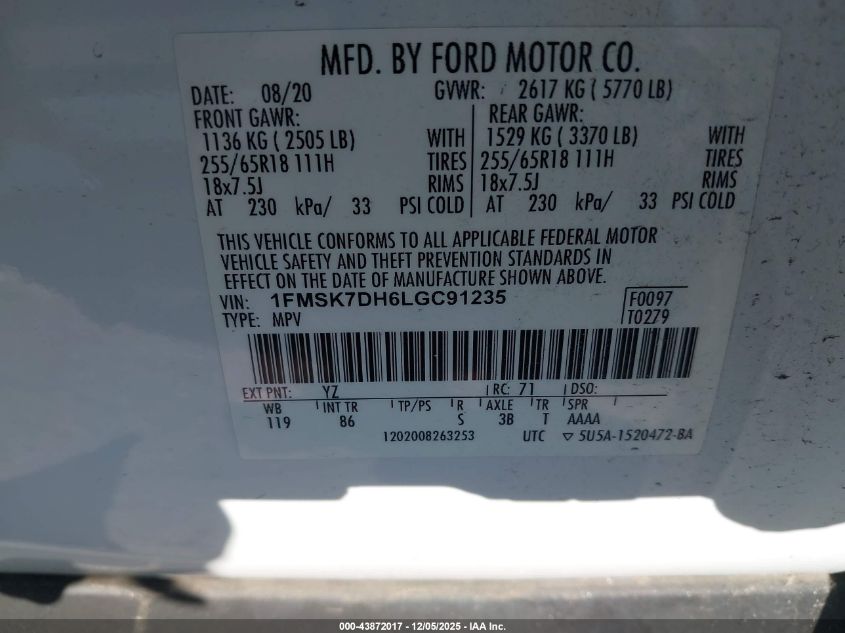 Цвет БелыйЦилиндры 4VIN 1FMSK7DH6LGC91235Состояние Заводится и едет (проверено)Повреждения Передняя правая AutoRIA