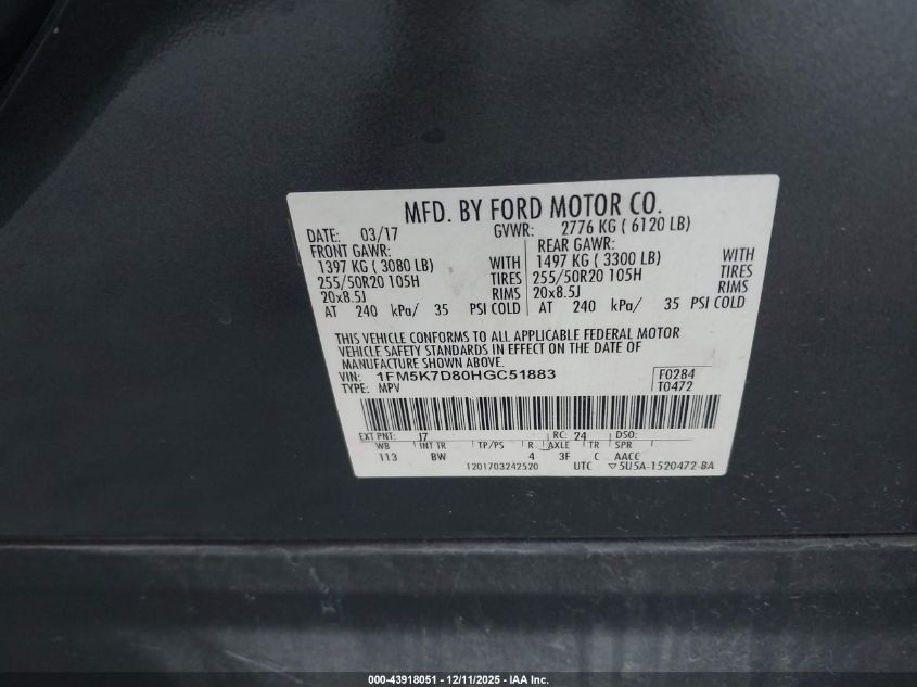 Цвет Цилиндры 6Привод Передний приводVIN 1FM5K7D80HGC51883Состояние НеизвестноПовреждения Неизвестно AutoRIA