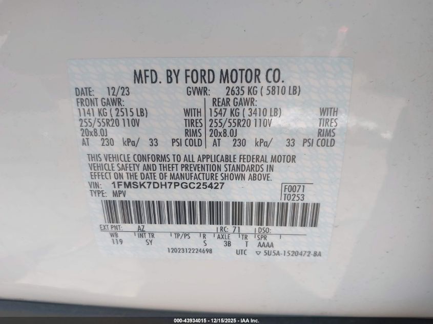 Цвет БелыйЦилиндры 4VIN 1FMSK7DH7PGC25427Состояние Заводится и едет (проверено)Повреждения Передняя или задняя AutoRIA