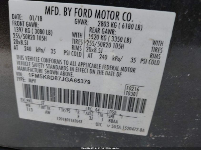 Цвет СерыйЦилиндры 6Привод Полный приводVIN 1FM5K8D87JGA65379Состояние Заводится и едет (проверено)Повреждения Передняя или задняя AutoRIA