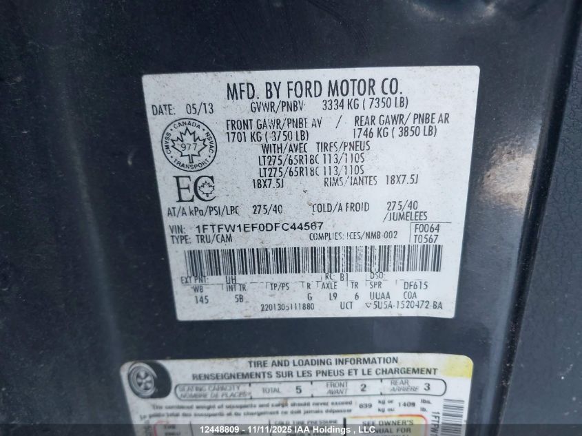 2013 FORD F-150 2013 року , , Полный привод, vin - 1FTFW1EF0DFC44567 из США