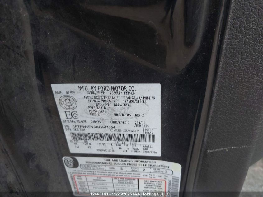 2010 FORD F-150 2010 року , , Полный привод, vin - 1FTFW1EV3AFA47654 из США