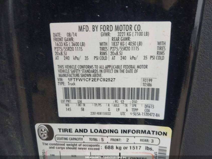 2014 FORD F-150 2014 року Бензин, 5.0, , vin - 1FTFW1CF2EFC92527 из США