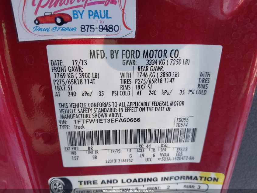 2014 FORD F-150 2014 року Бензин, 3.5, Полный привод, vin - 1FTFW1ET3EFA60666 из США