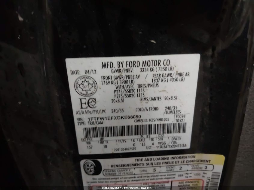 2013 FORD F-150 2013 року Бензин, 5.0, Полный привод, vin - 1FTFW1EFXDKE68050 из США