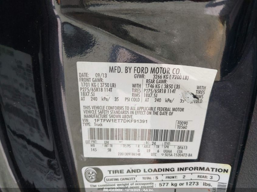 2013 FORD F-150 2013 року Бензин, 3.5, Полный привод, vin - 1FTFW1ET7DKF91391 из США