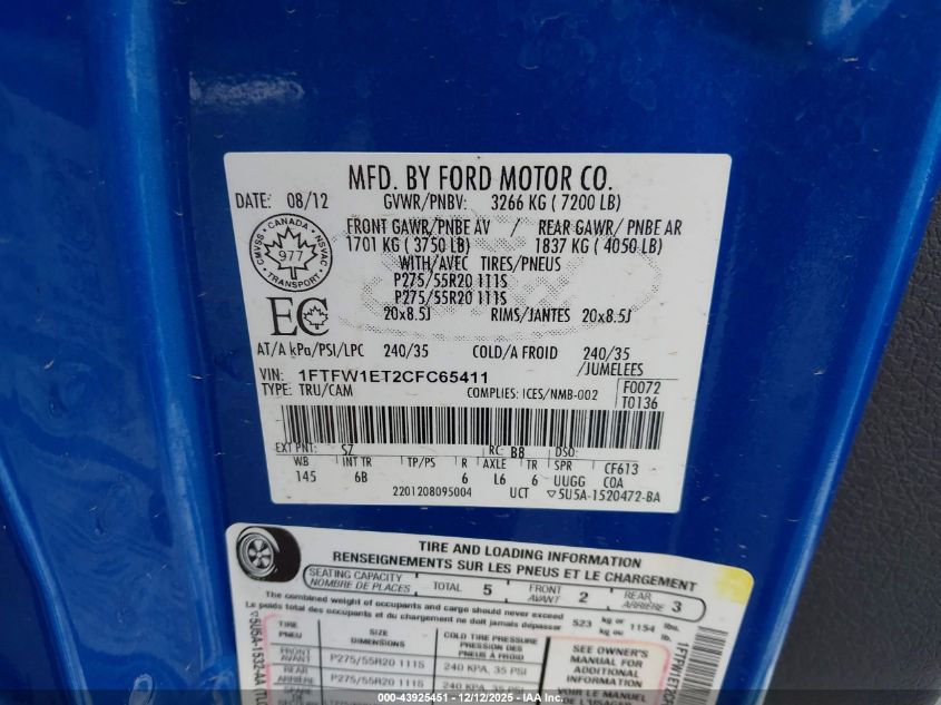 2012 FORD F-150 SUPERCREW
