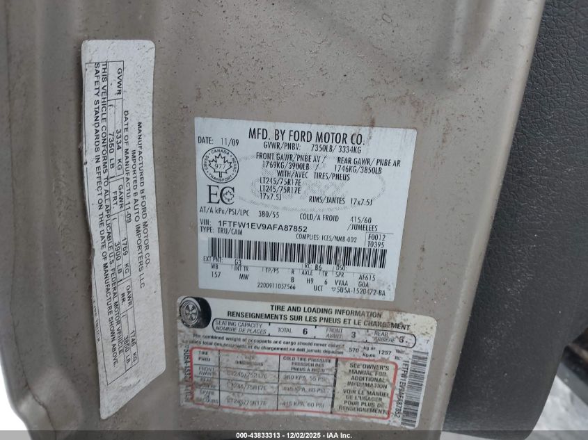 2010 FORD F-150 2010 року Бензин, 5.4, Полный привод, vin - 1FTFW1EV9AFA87852 из США