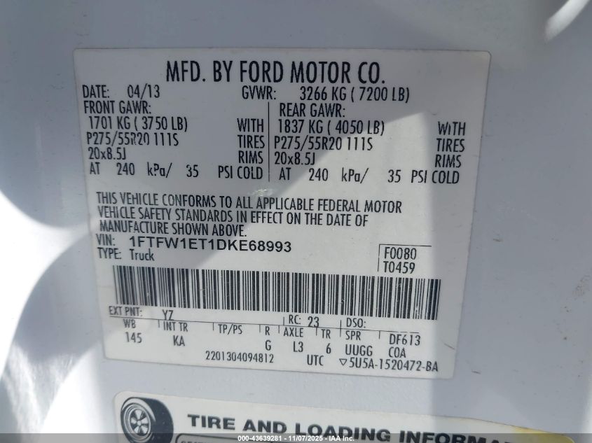 2013 FORD F-150 2013 року Бензин, 3.5, Полный привод, vin - 1FTFW1ET1DKE68993 из США
