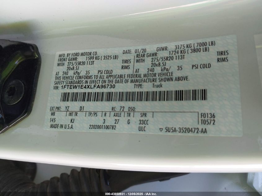 2020 FORD F-150 2020 року Бензин, 3.5, Полный привод, vin - 1FTEW1E4XLFA96730 из США