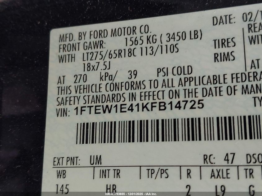 2019 FORD F-150 2019 року Бензин, 3.5, Полный привод, vin - 1FTEW1E41KFB14725 из США