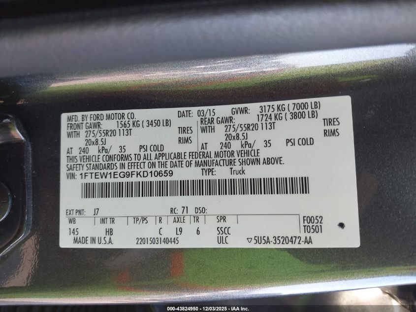 2015 FORD F-150 2015 року Бензин, 3.5, Полный привод, vin - 1FTEW1EG9FKD10659 из США