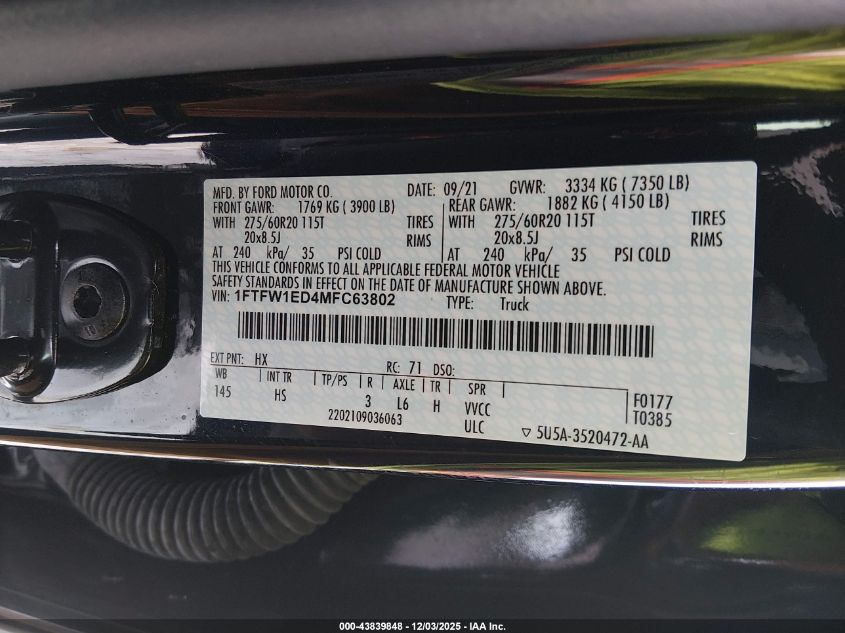 2021 FORD F-150 2021 року Гибрид, 3.5, Полный привод, vin - 1FTFW1ED4MFC63802 из США