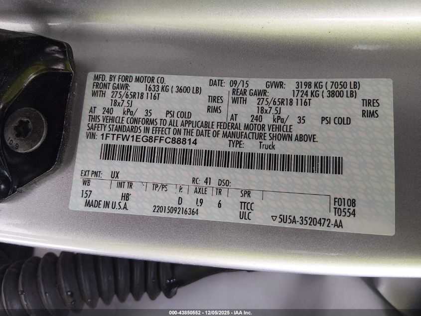 2015 FORD F-150 2015 року Бензин, 3.5, Полный привод, vin - 1FTFW1EG8FFC88814 из США
