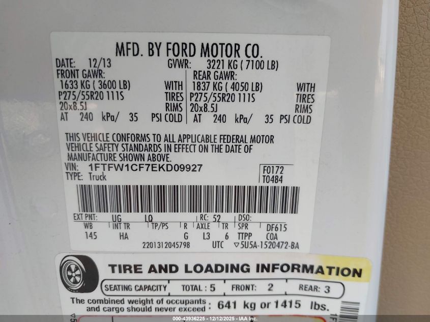 Цвет БелыйЦилиндры 8VIN 1FTFW1CF7EKD09927Состояние СтационарноПовреждения Обычный износ AutoRIA