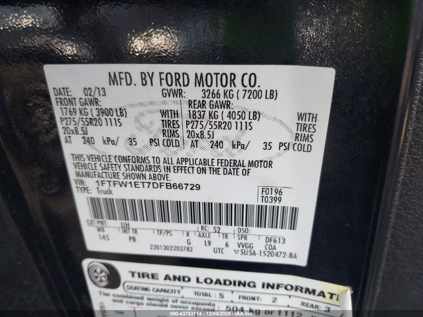 2013 FORD F-150 2013 року Бензин, 3.5, Полный привод, vin - 1FTFW1ET7DFB66729 из США