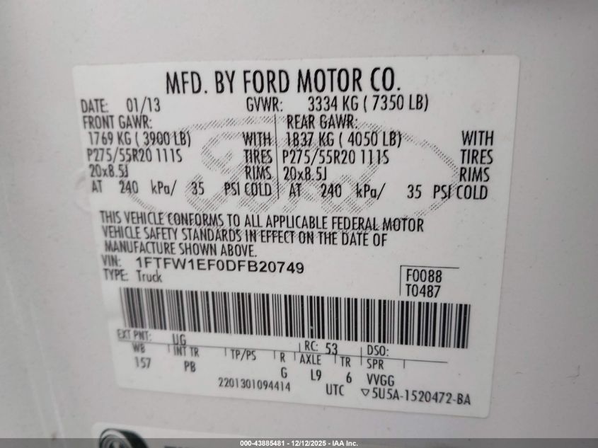 2013 FORD F-150 2013 року Бензин, 5.0, Полный привод, vin - 1FTFW1EF0DFB20749 из США