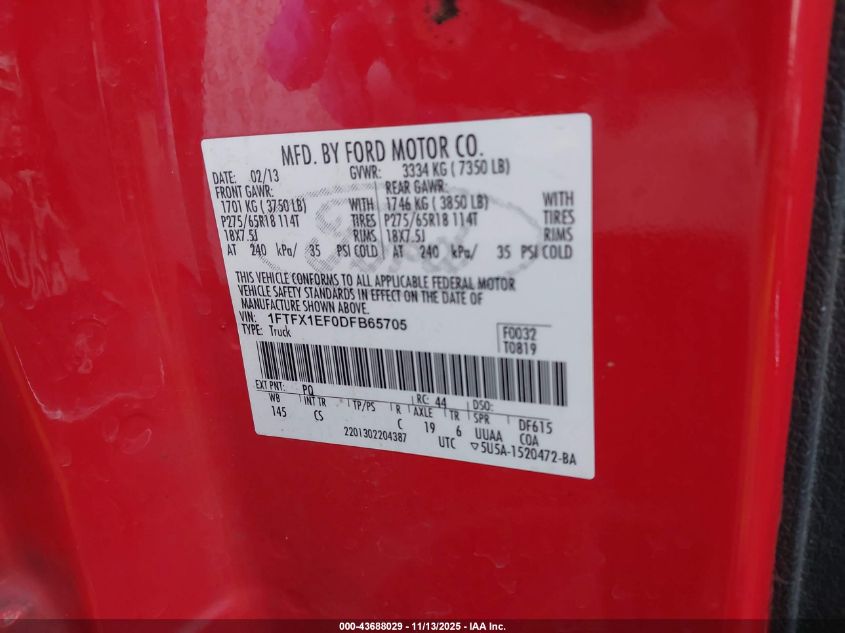 2013 FORD F-150 2013 року Бензин, 5.0, Полный привод, vin - 1FTFX1EF0DFB65705 из США