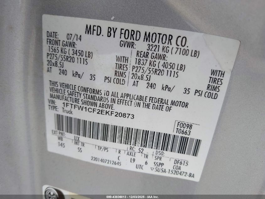 2014 FORD F-150 2014 року Бензин, 5.0, , vin - 1FTFW1CF2EKF20873 из США