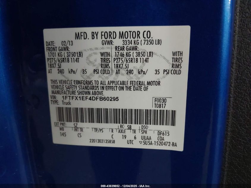 2013 FORD F-150 2013 року Бензин, 5.0, Полный привод, vin - 1FTFX1EF4DFB60295 из США