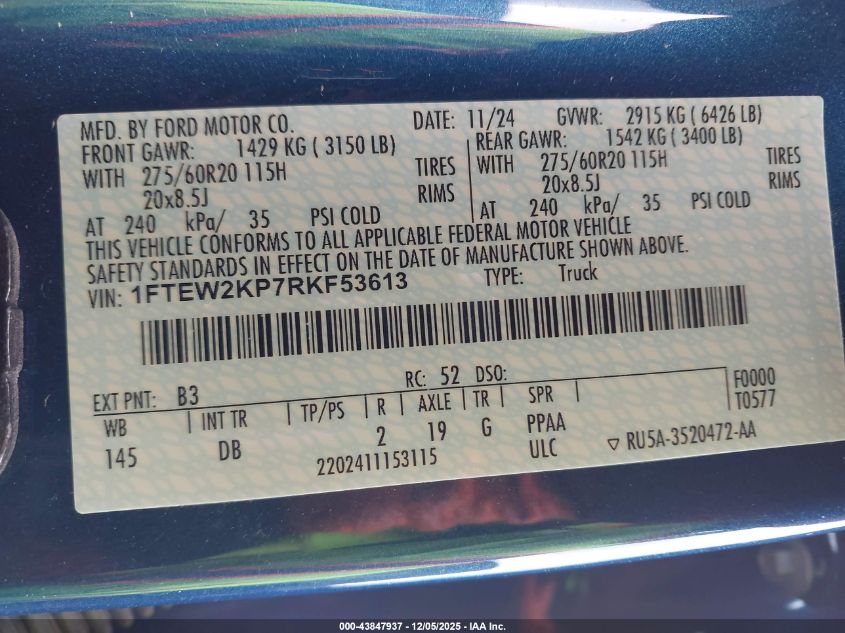 2024 FORD F-150 2024 року Бензин, 2.7, , vin - 1FTEW2KP7RKF53613 из США