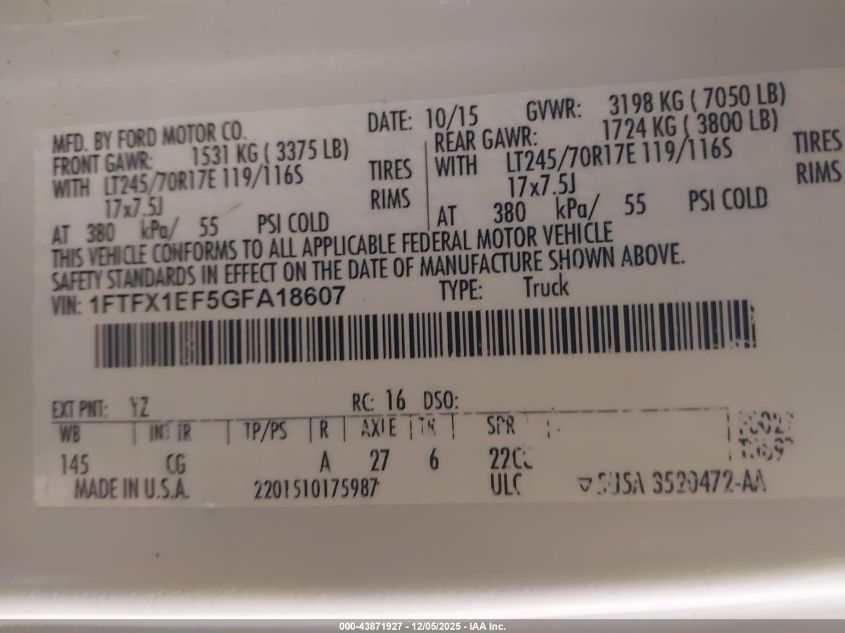 2016 FORD F-150 2016 року Бензин, 5.0, Полный привод, vin - 1FTFX1EF5GFA18607 из США