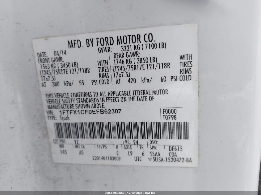2014 FORD F-150 2014 року Бензин, 5.0, , vin - 1FTFX1CF0EFB62307 из США