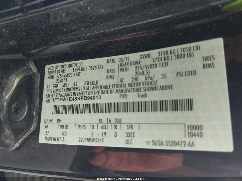 2019 FORD F-150 2019 року Бензин, 3.5, Полный привод, vin - 1FTFW1E48KFB94013 из США