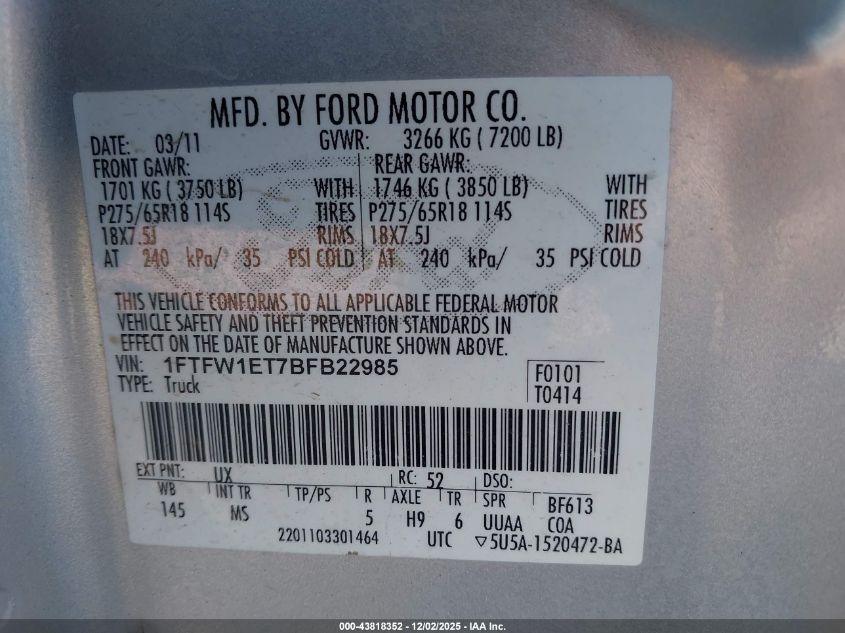 2011 FORD F-150 2011 року Бензин, 3.5, Полный привод, vin - 1FTFW1ET7BFB22985 из США