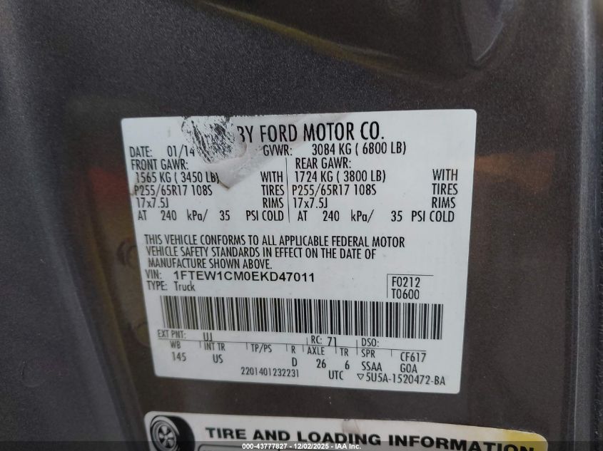 2014 FORD F-150 2014 року Бензин, 3.7, , vin - 1FTEW1CM0EKD47011 из США