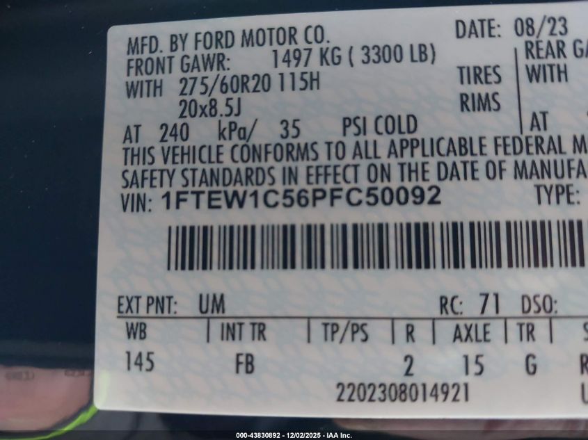 2023 FORD F-150 2023 року Бензин, 5.0, , vin - 1FTEW1C56PFC50092 из США