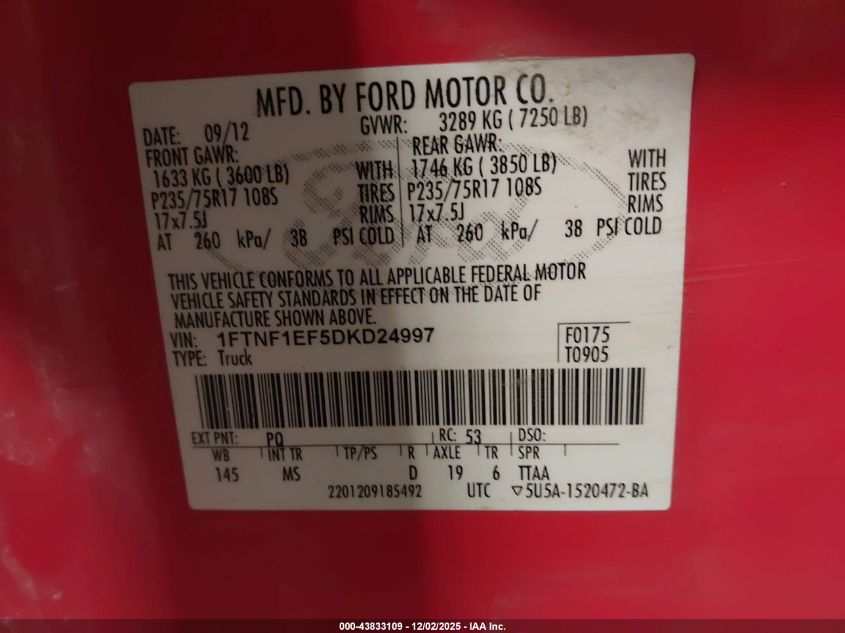 2013 FORD F-150 2013 року Бензин, 5.0, Полный привод, vin - 1FTNF1EF5DKD24997 из США