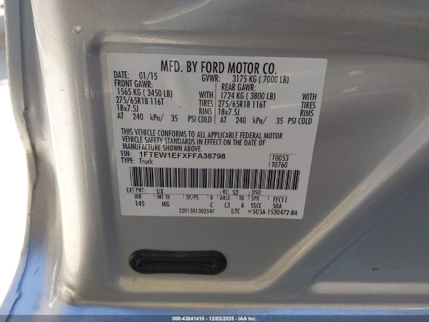 2015 FORD F-150 2015 року Бензин, 5.0, Полный привод, vin - 1FTEW1EFXFFA38798 из США