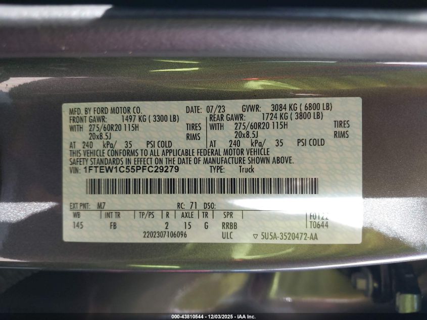 2023 FORD F-150 2023 року Бензин, 5.0, , vin - 1FTEW1C55PFC29279 из США