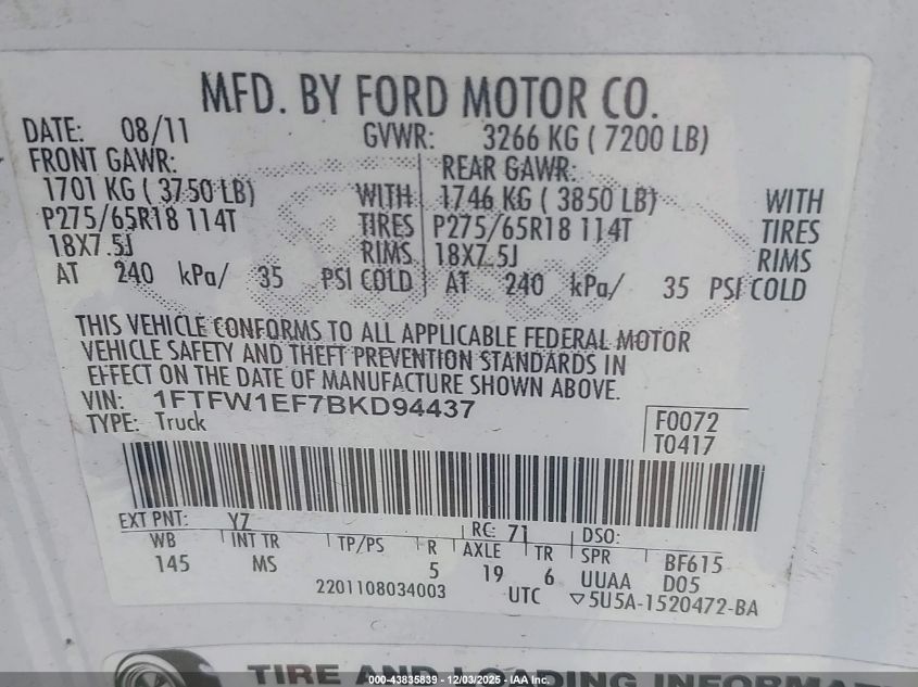 2011 FORD F-150 2011 року Бензин, 5.0, Полный привод, vin - 1FTFW1EF7BKD94437 из США